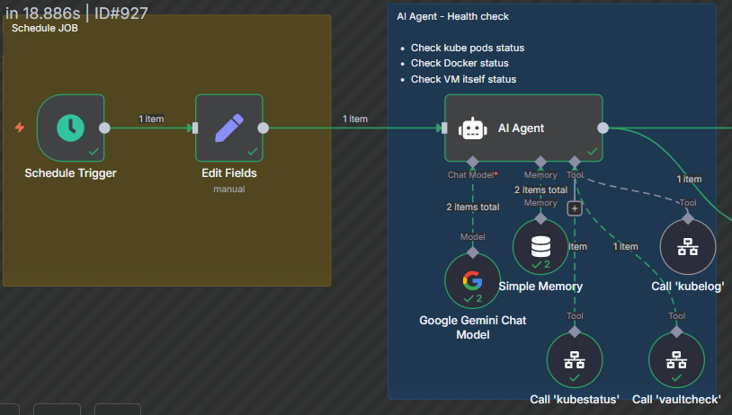 - It calls some custom tools I set up inside n8n to get pod logs and statuses.